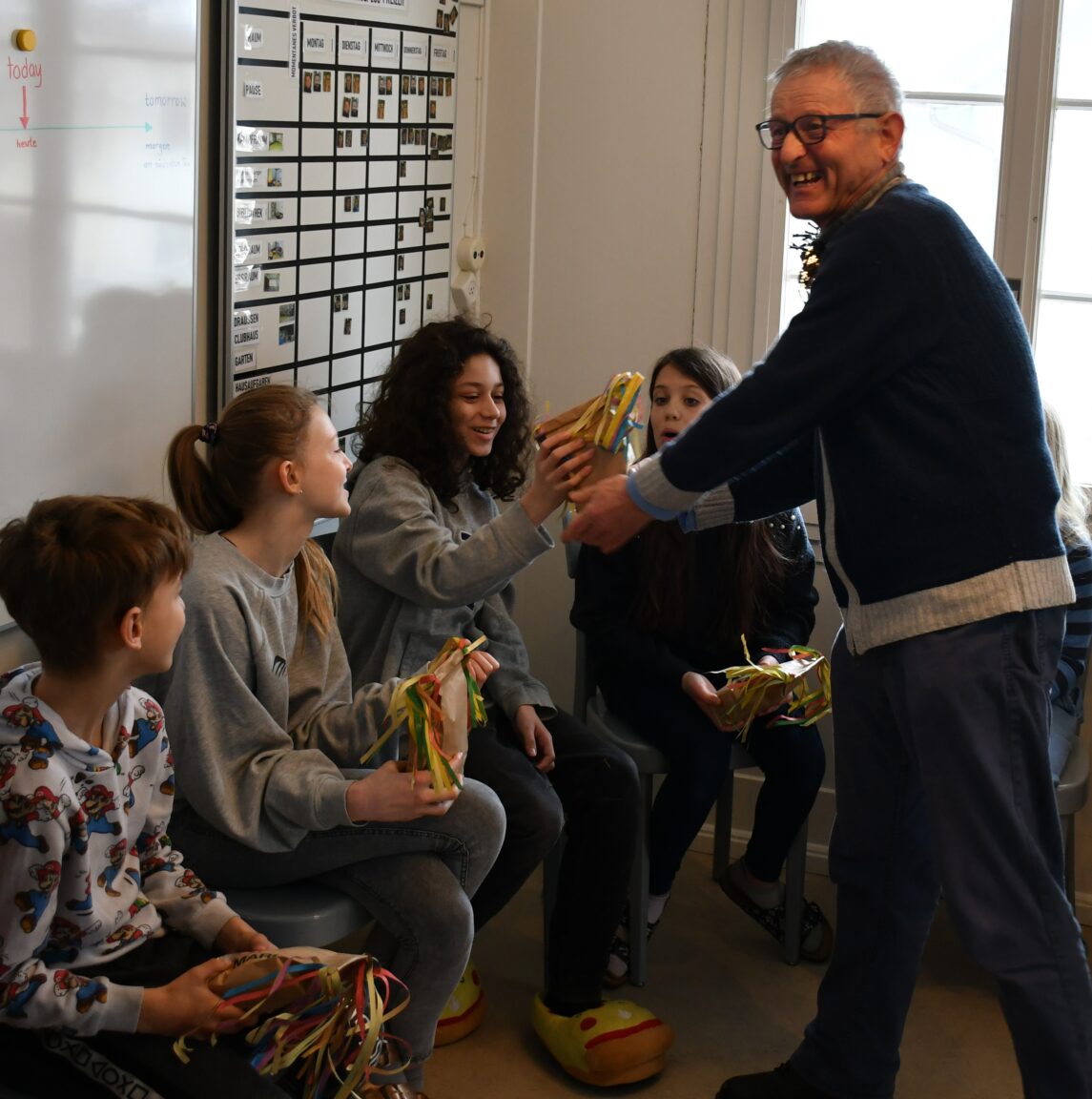 Nach 18 langen Jahren Dienste in der schuLpLus war am letzten Freitag der letzte Arbeitstag von Franz Müller als Koch, Hauswirtschafter und gute Seele des Hauses plötzlich da… In einer verlängerten Pause mit Schlangenbrot-Znüni am offenen Feuer und einer kleinen Feier verabschiedeten wir uns von «unserem» Franz. Wir werden dich, lieber Franz, vermissen und dich in allerbester Erinnerung bewahren! Wir wünschen dir für deine verdiente Pensionszeit von Herzen nur das Beste! Häb’s guet!