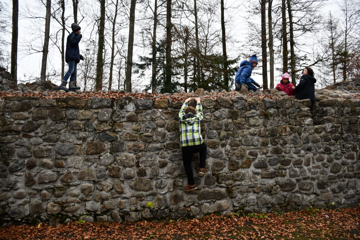 Gelebte Geschichte in der nahen Umgebung! Am Montag, 30. November 2020 machten sich die 4.-6. Klasse auf zur Ruine Wildenburg nahe der Lorzentobelbrücke. Ein Kurzausflug, der allen Kindern sicherlich im Gedächtnis bleiben wird.