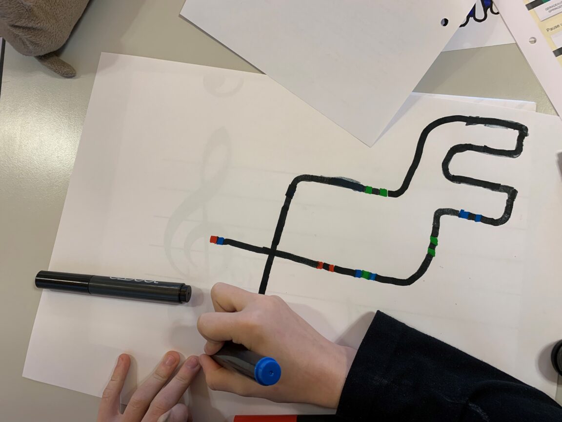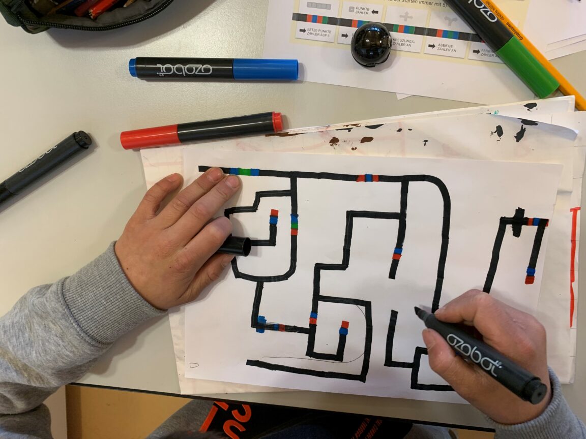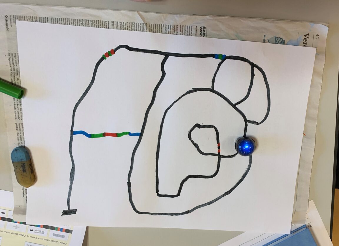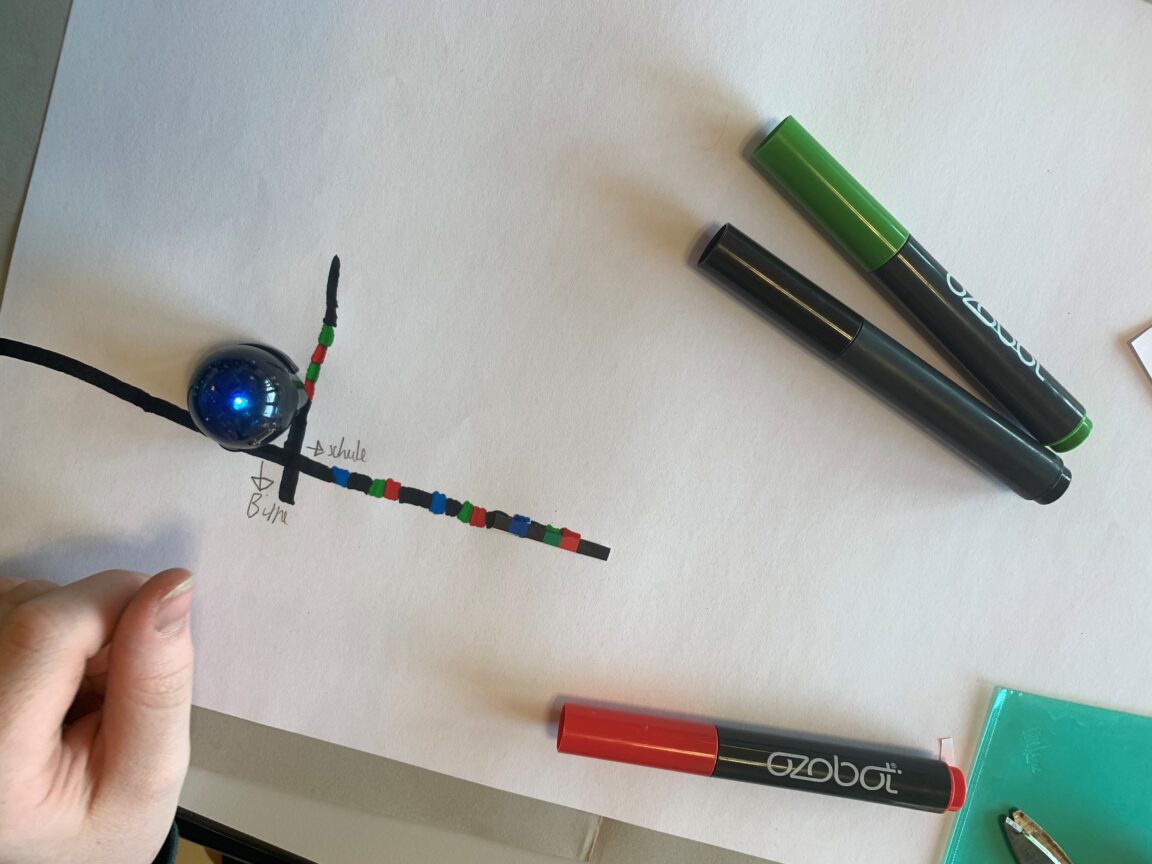 Durch das Zeichen von Linien und den Gebrauch von Farben konnten die Roboter den Zeichnungen entlang gelenkt werden. Ein Riesenspass für die Kinder und spielerischer Erstkontakt mit technischem Programmieren.