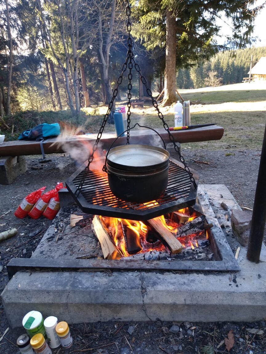 Vor dem Mittagessen lernten die Kinder die Umgebung um St. Jost auf dem Raten besser kennen. Währen die Kleineren sich mit den verschiedenen Sinnen auseinandersetzten, beschäftigten sich die Grösseren mit Schutz- und Nutzfunktionen des Waldes. Die auf dem Feuer gekochten Älplermagronen passten super zum Thema und schmeckten ebenso! Am Nachmittag war Spiel und Spass angesagt und die Kinder konnten sich unter Anleitung in die Schnitzkunst mit dem Sackmesser einführen lassen.