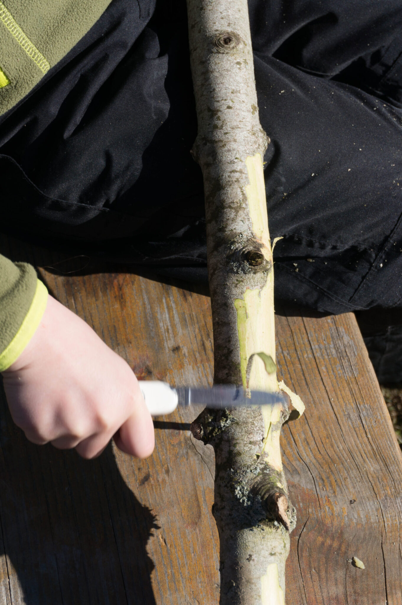Vor dem Mittagessen lernten die Kinder die Umgebung um St. Jost auf dem Raten besser kennen. Währen die Kleineren sich mit den verschiedenen Sinnen auseinandersetzten, beschäftigten sich die Grösseren mit Schutz- und Nutzfunktionen des Waldes. Die auf dem Feuer gekochten Älplermagronen passten super zum Thema und schmeckten ebenso! Am Nachmittag war Spiel und Spass angesagt und die Kinder konnten sich unter Anleitung in die Schnitzkunst mit dem Sackmesser einführen lassen.