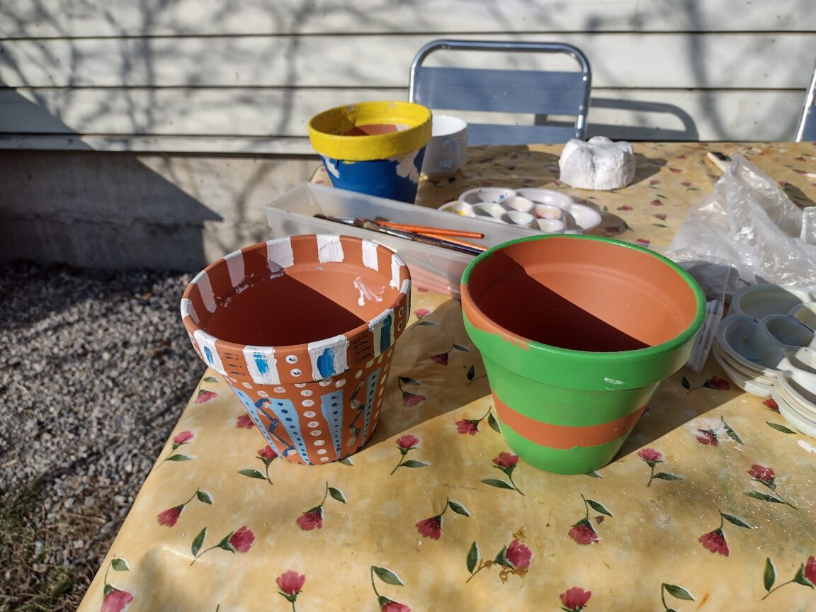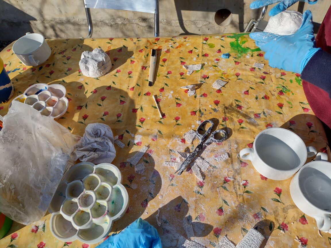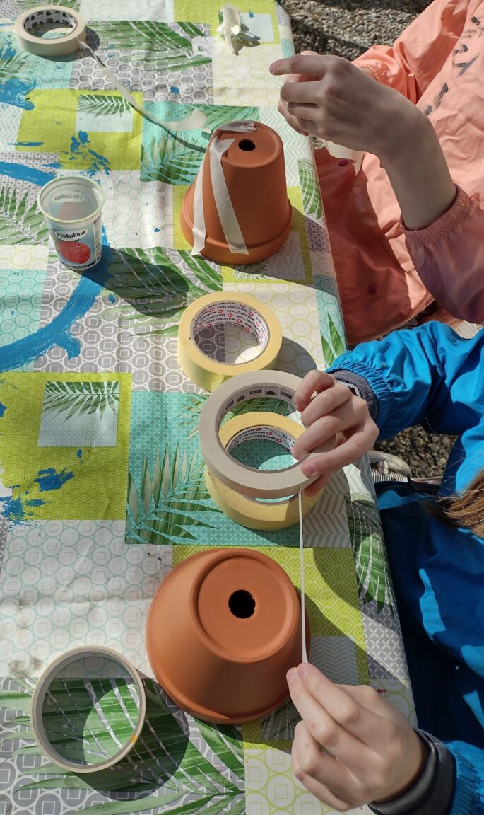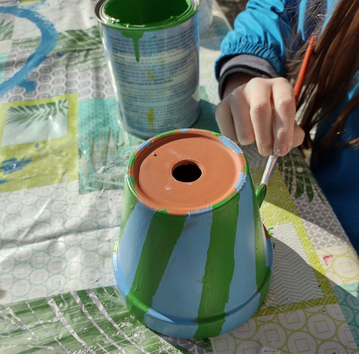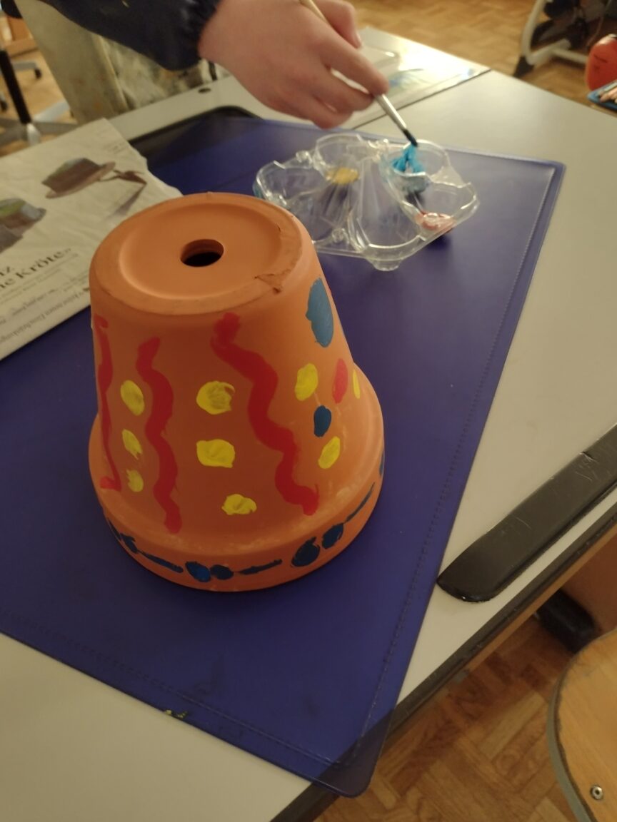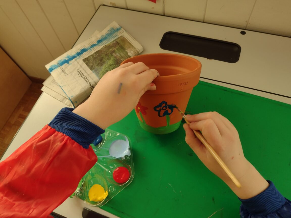 Im Sozialpädagogischen Atelier haben die beiden Kindergruppen zum einen ihre Gips-Fertigkeiten weiter ausgebaut und für Kressesprossen Gips-Pflanzgefässe gestaltet, zum anderen Tontöpfli angemalt und Apfelsamen gepflanzt. Für die Apfelsamen braucht es etwas mehr Geduld, bis Wachstumsfortschritte erkennbar sind – die Kresse hat in grossen Teilen schon den Weg aufs Znünibrot gefunden!