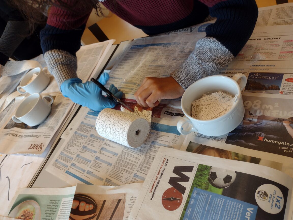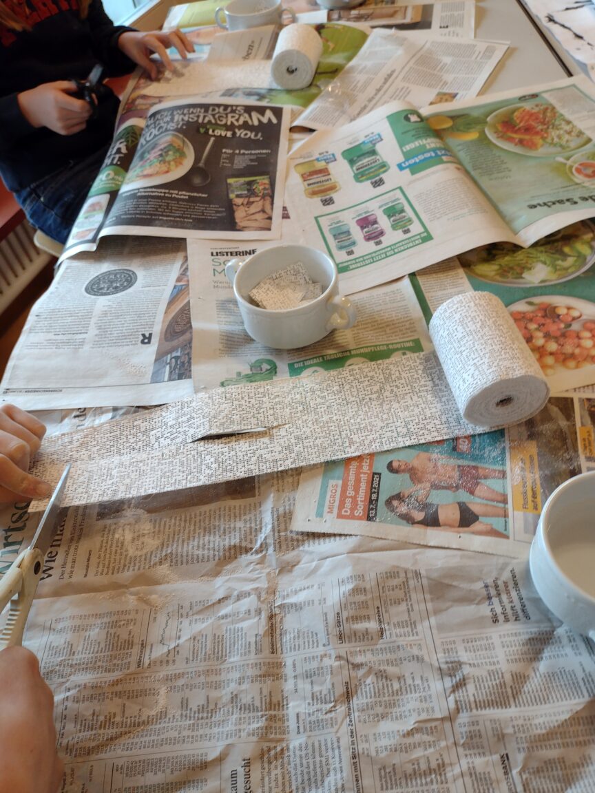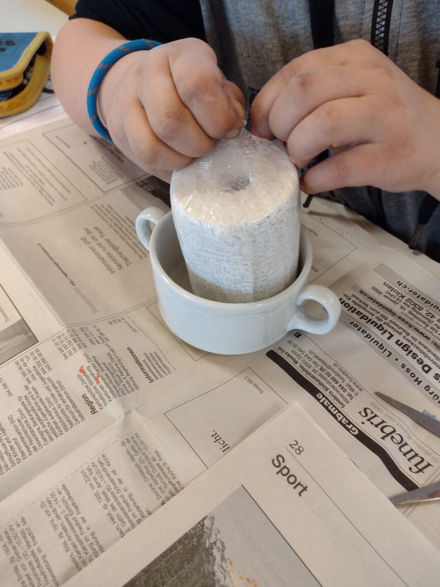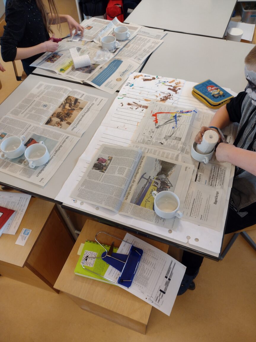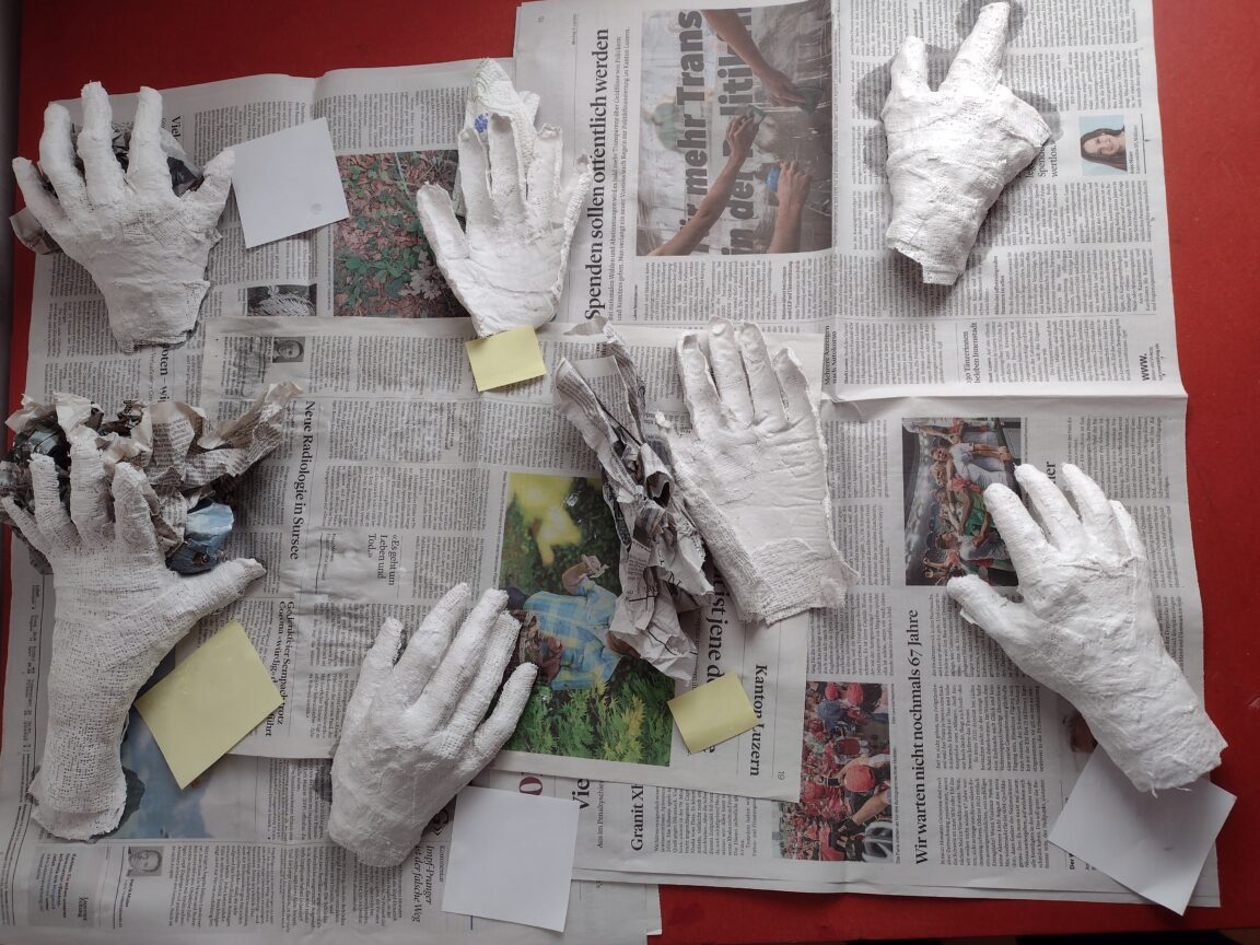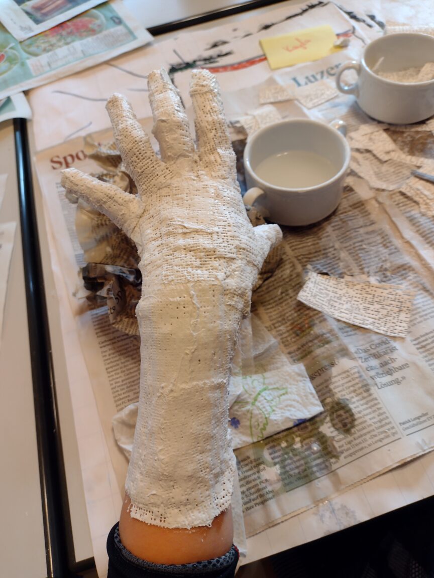 Das sozialpädagogische Atelier wird jeweils parallel zum Schwimmunterricht im Wechsel mit den Unterstufen- oder Mittelstufenkindern angeboten. Aktuell sind unsere «Grossen» dabei, die eigene Hand mit Gips-Mullbinden zu gestalten. Eine Tätigkeit, die die Kinder fasziniert und begeistert.