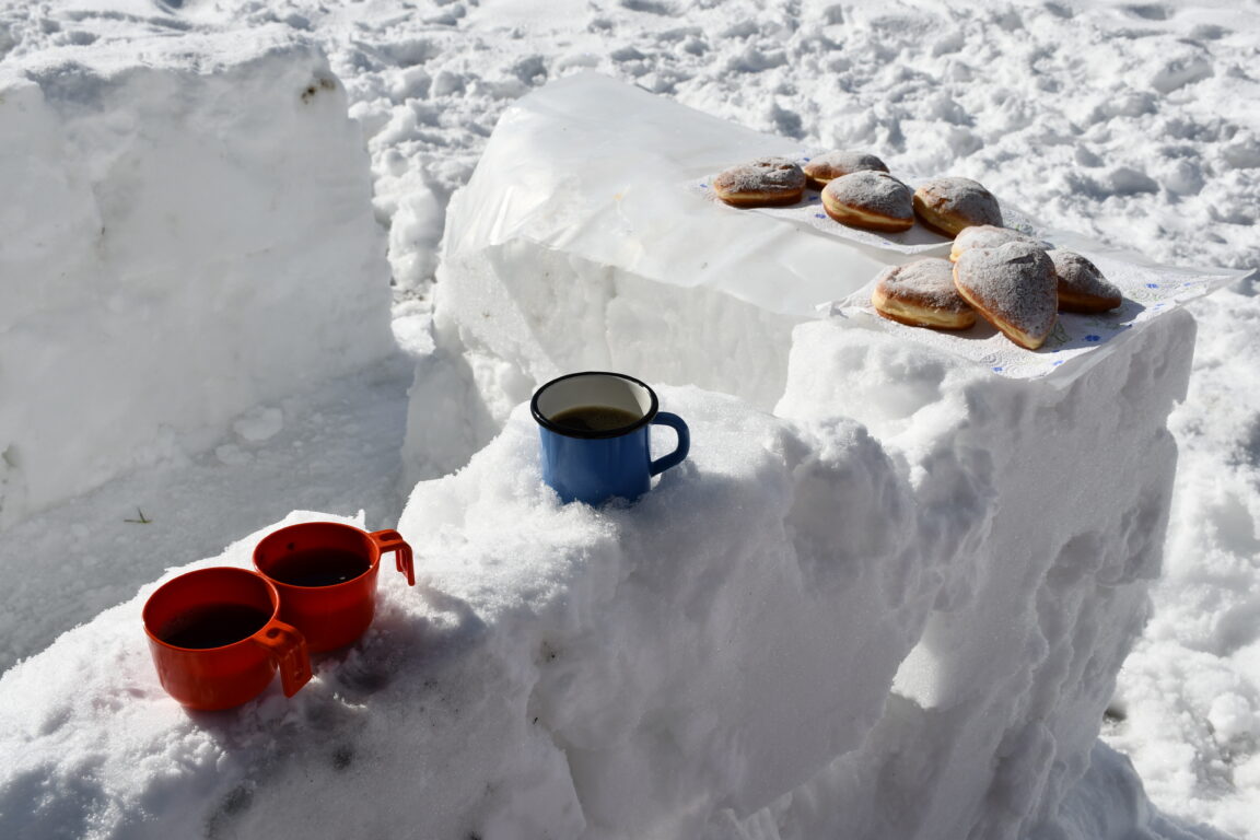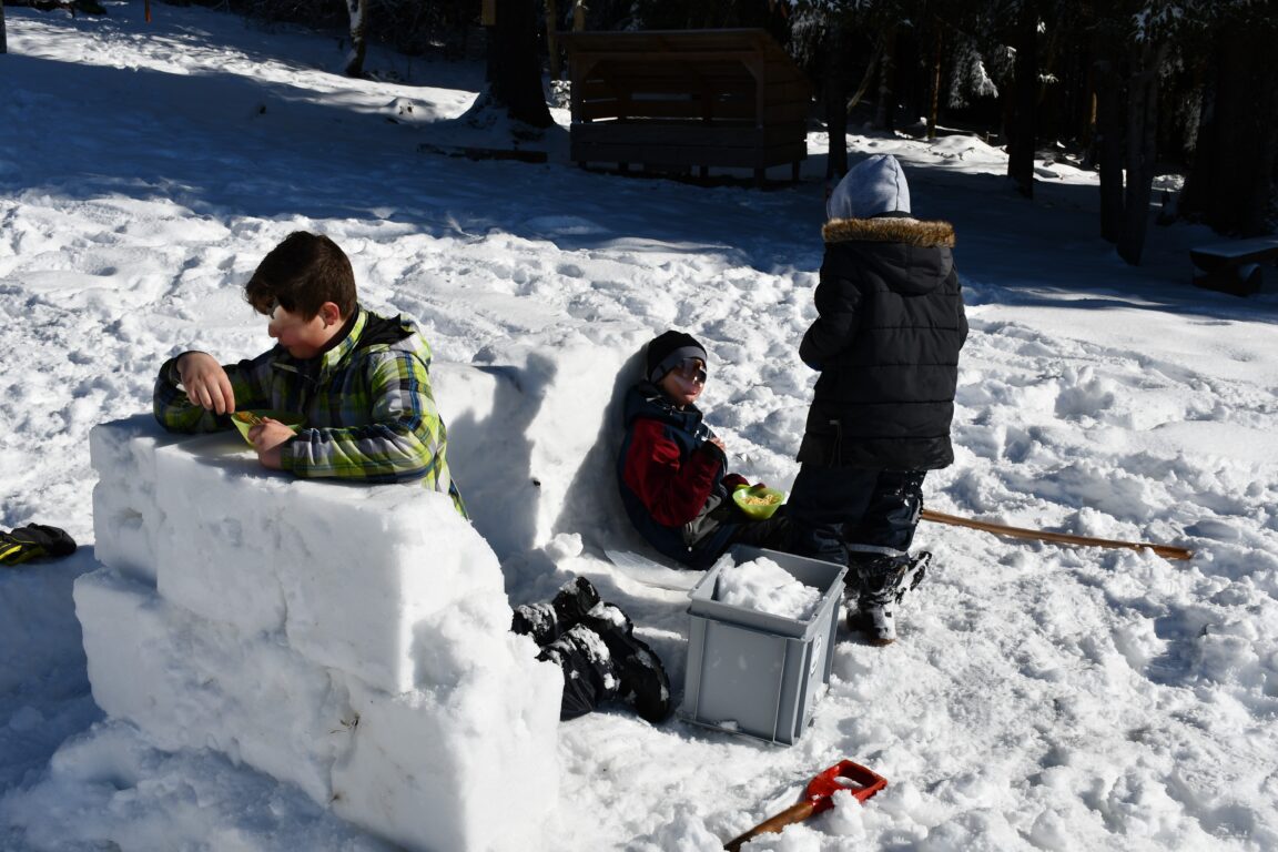 Eine grosse Auswahl für ein kreatives und abwechslungsreiches Angebot für unsere Kinder, während der Sportwochen-Tage in schuLpLus, konnte wir heuer umständehalber nicht anbieten. Umso schöner, dass uns die Schneeverhältnisse und das Wetter – zumindest am Montag – keinen Strich durch die Rechnung machten! Nahe der Kapelle St. Jost auf dem Raten genossen die Kinder und die Erwachsenen den super Schneetag beim Schneeburgen bauen und bei einem Spaghetti-Schmaus unter freiem Himmel. Die noch unfertigen Schneeburgen wurden Mittags idealerweise als «Schneebar» zum Mittagessen umgenutzt.