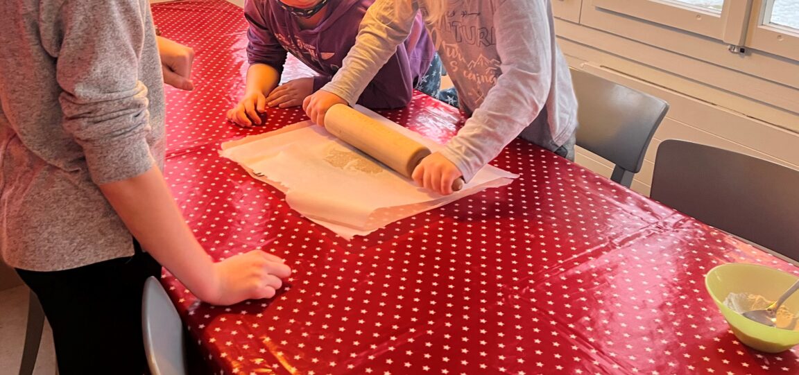 Ein «Muss» vor den Weihnachtsferien: selber Weihnachtsguetzli backen! Im sozialpädagogischen Atelier wurde dazu die schuLpLus kurzerhand zur Weihnachtsbäckerei umfunktioniert. Alle Kinder-Bäcker*innen gaben sich viel Mühe, verschiedenste Guezlisorten herzustellen. Einige Teigstückli haben den Weg allerdings nicht in den Backofen gefunden, sondern direkt in den Mund der Kinder! Mmmmh, fein!